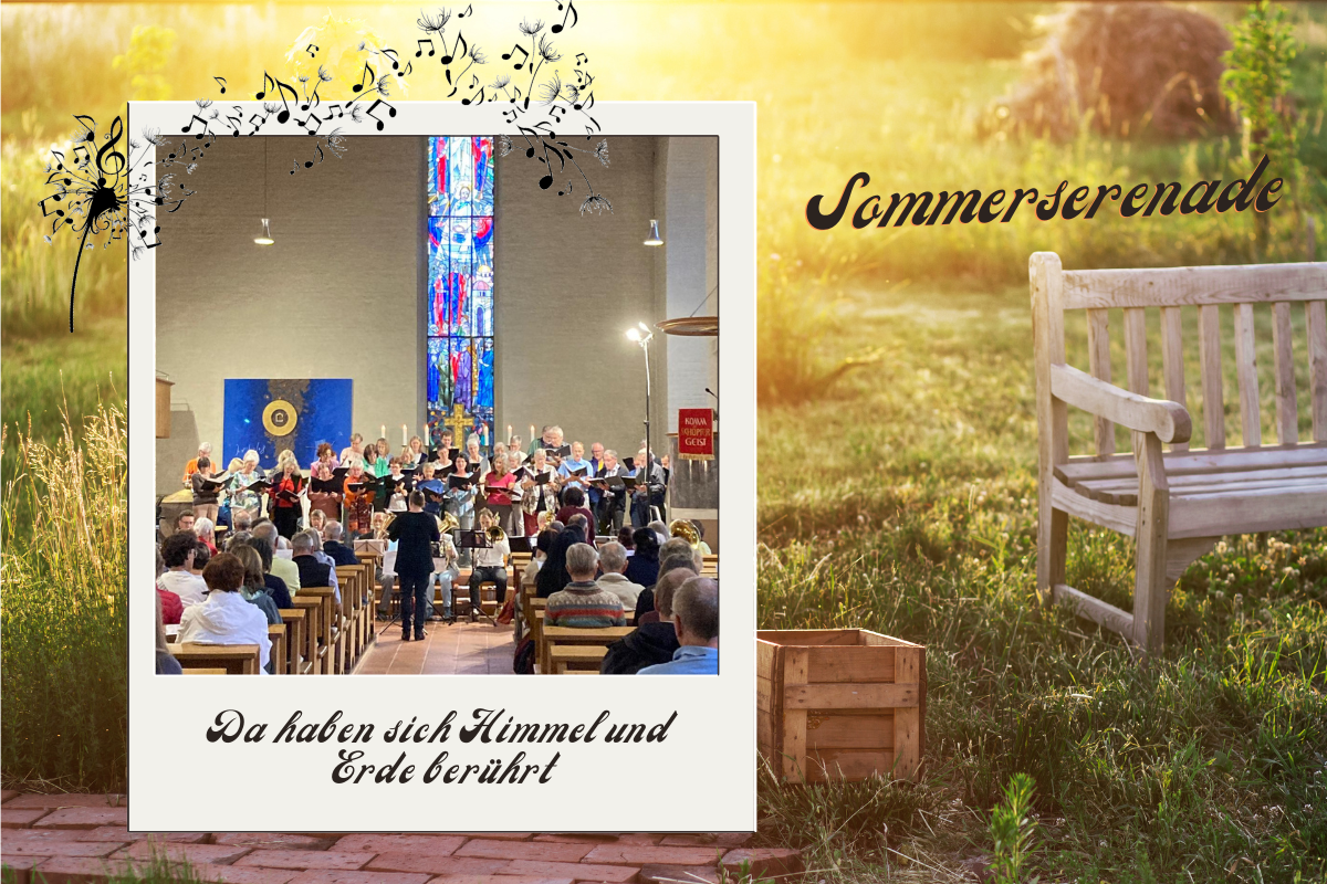 01.08.2025 | Da haben sich Himmel und Erde wahrlich berührt! Wir blicken dankbar auf eine gelungene Sommerserenade am gestrigen Abend zurück. Etwas Fantasie der Sänger*innen, Musiker*innen und Gäste wurde vom Moderator Pfr. Wolfgang Blöcker gefordert. Denn sich in der harten Kirchenbank vorzustellen, an einem lauen Sommerabend auf der grünen Kirchenwiese zu sitzen und die Musik zu genießen, war nicht ganz so einfach. :-) Dem Genuss der Sommerserenade tat das Wetter aber keinen Abbruch. Wir durften viele schöne, zu Herzen gehende und frohmachende Musik erleben - manche Stücke zum Genießen und manche Lieder auch zum Mitsingen. Wir bedanken uns bei den drei Projektchören der Erlöserkirche, der Auferstehungskirche und der Kirchengemeinde Memmelsdorf-Lichteneiche sowie dem Erlöserposaunenchor und unserem Moderator Pfr. Wolfgang Blöcker für den gelungenen Abend.